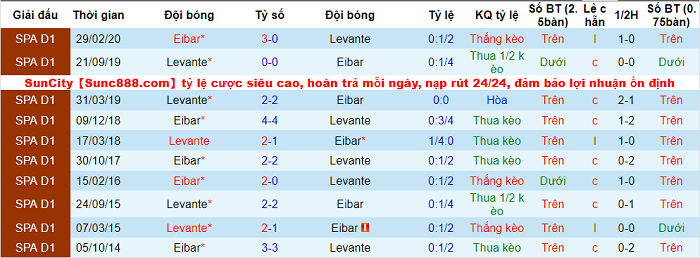 Trước trận đấu vào Chủ nhật (10/1), Levante và Eibar thường xuyên chia điểm mỗi khi so tài cùng nhau tại La Liga. Cụ thể: 6/10 lần chạm trán trước đây giữa họ kết thúc với tỷ số hòa. 6 lần đối đầu gần nhất thì hai đội cũng có tới 4 lần bất phân thắng bại.