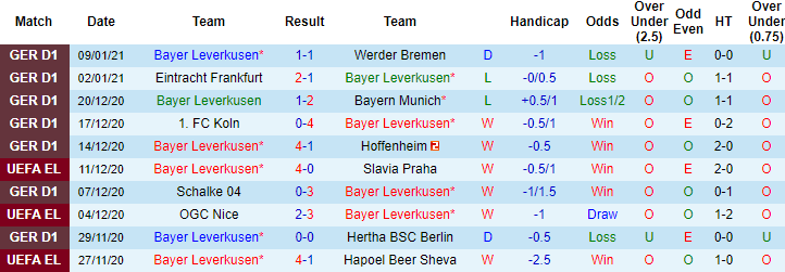 + Thống kê 10 trận gần nhất của Leverkusen