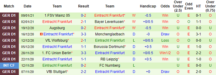 + Thống kê 10 trận gần nhất của Eintracht Frankfurt