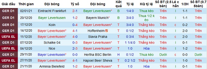 + Thống kê 10 trận gần nhất của Leverkusen