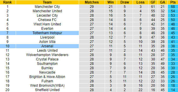Tính từ trận thắng 2-0 trên sân Emirates tại Cúp Liên đoàn vào tháng 12/2018, Tottenham đã bất bại 5 trận liên tiếp khi đối đầu Arsenal. Thành tích cụ thể của Gà trống thành London trong 5 trận đấu này là 3 chiến thắng và 2 trận hòa.