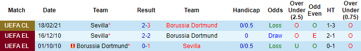 Tổng cộng sau 3 trận đối đầu, thành tích của Dortmund và Sevilla là cân bằng khi mỗi đội có 1 chiến thắng và 1 trận hòa. Nếu sự cân bằng này không được phá bỏ sau trận đấu vào rạng sáng 10/3, Dortmund là đội hưởng lợi.