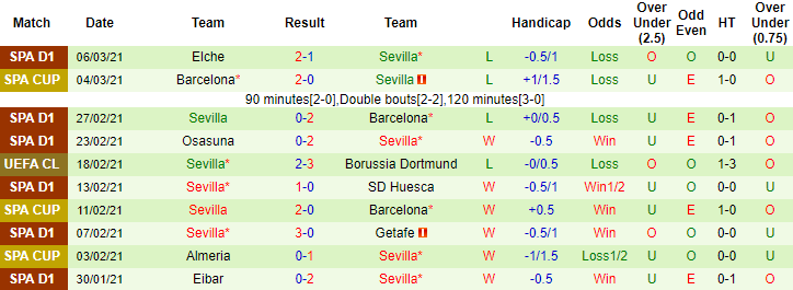 + Thống kê 10 trận gần nhất của Sevilla