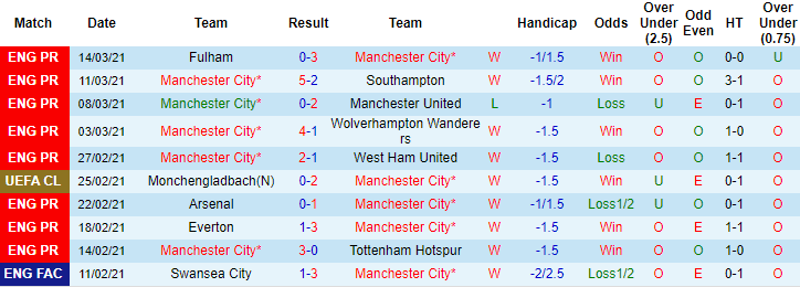 Lượt về trên sân Etihad, M'gladbach phải thắng cách biệt 2 bàn trở lên mới có cơ hội giành vé vào tứ kết Cúp C1 châu Âu 2020/21. Thế nhưng lịch sử đang hoàn toàn chống lại họ khi trước đây, M'gladbach chưa từng đánh bại Man City dù chỉ 1 lần.