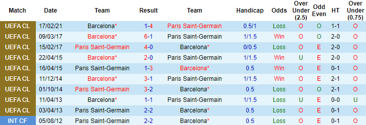 Kết quả 9 trận đối đầu trước đó nghiêng một chút về phía Barcelona khi họ có 4 chiến thắng, 2 trận hòa, PSG thắng 3 trận. Màn đối đầu đáng nhớ nhất giữa hai ông lớn của bóng đá Pháp và Tây Ban Nha là ở vòng 1/8 Champions League 2016/17.