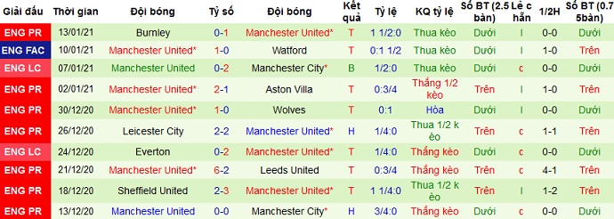+ Thống kê 10 trận gần nhất của Man United