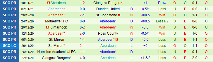 + Thống kê 10 trận gần nhất của Aberdeen