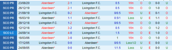 Phong độ và thống kê đối đầu Livingston - Aberdeen gần đây: