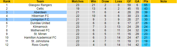 Đêm nay, thầy trò HLV Martindale trở về sân nhà tiếp đón Aberdeen. Dựa vào phong độ hiện tại và thêm đội hình lành lặn, Livingston tự tin sẽ giành một kết quả suôn sẻ, qua đó củng cố vị trí trong top 6.