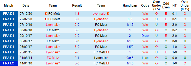 Phong độ và thống kê đối đầu Lyon vs Metz