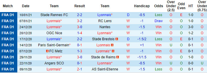 + Thống kê 10 trận gần nhất của Lyon