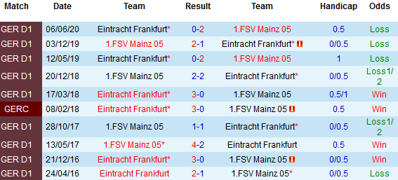 + Lịch sử đối đầu Mainz vs Eintracht Frankfurt