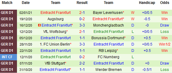 Ở chiều ngược lại, Eintracht Frankfurt vẫn giữ được sự ổn định cần thiết ngay cả khi phải đương đầu với lịch thi đấu dày đặc. Liên tiếp 3 vòng gần nhất đều bất bại dù phải đương đầu với các đối thủ có số má như Monchengladbach hay Leverkusen.