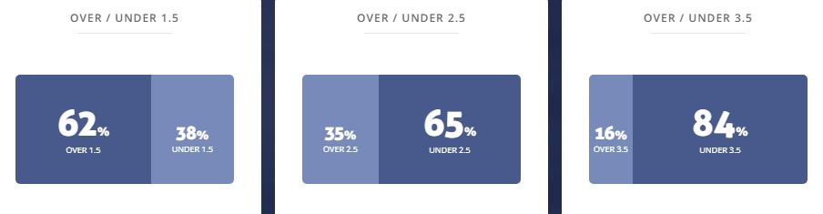 Mặt khác, cũng xin chia buồn với những ai yêu thích lối bóng đá tấn công khi siêu máy tính Ygeteb cũng không tin tưởng vào trận này sẽ là một trận cầu mãn nhãn giành cho giới hâm mộ môn thể thao vua. Cụ thể hơn nữa, Ygeteb đã đặt ra độ khả thi của cửa Under 2.5 (dưới 3 bàn thắng) là khá cao, lên tới 65% độ tin cậy và Under 3.5 (dưới 4 bàn thắng) là gần như tuyệt đối với 84% độ khả thi.