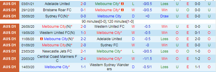 + Thống kê 10 trận gần nhất của Melbourne City