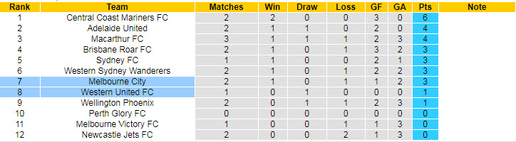 Phong độ và thống kê đối đầu Melbourne City - Western United gần đây: