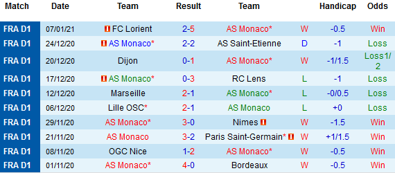 + Thống kê 10 trận gần nhất của Monaco