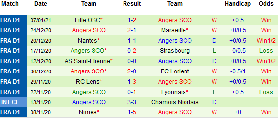 + Thống kê 10 trận gần nhất của Angers