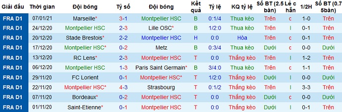 + Thống kê 10 trận gần nhất của Montpellier
