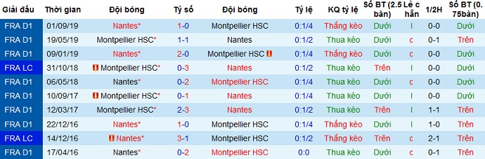 + Lịch sử đối đầu Montpellier vs Nantes