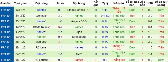 + Thống kê 10 trận gần nhất của Nantes