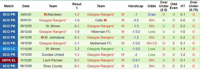 Tỷ lệ thắng kèo của Rangers FC mùa này lên tới 81.82%, cao nhất giải VĐQG Scotland. Cả 4 chiến thắng gần nhất của Rangers trước Motherwell đều có cách biệt từ 2 bàn trở lên.