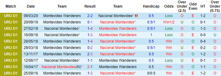 Tỷ lệ kèo Nacional vs Montevideo Wanderers