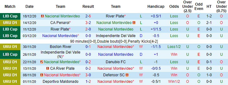 Trong khi đó bên phía đối diện, Nacional vì phải căng sức đá Copa Libertadores nên đã không thể giữ được sự ổn định. 7 trận vừa qua tính trên mọi đấu trường, Nacional mất điểm tới 6 lần (thua 4, hòa 2) và thua 6 lần theo kèo châu Á. 3 trận gần nhất Nacional để thủng lưới tới 11 lần.