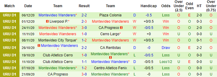 + Thống kê 10 trận gần nhất của Montevideo Wanderers