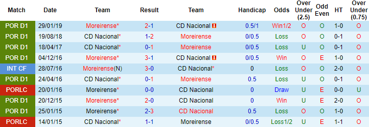 Moreirense được coi là khắc tinh của Nacional. 6 trận đối đầu Nacional gần đây tính trên mọi đấu trường, Moreirense toàn thắng, 4 trận xé lưới đối thủ từ 2 lần trở lên. 6 lần trước đó làm khách trên sân của Nacional, Moreirense đạt thành tích bất bại với 5 chiến thắng và 1 trận hòa.