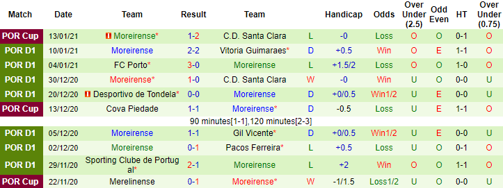 Dẫu vậy ở lần tái đấu sắp tới, Moreirense không được tin tưởng vào khả năng có kết quả tốt. Sau 13 vòng đấu tại giải VĐQG Bồ Đào Nha 2020/21, Moreirense giành 14 điểm, xếp thứ 9 trên bảng xếp hạng. Thành tích không quá tệ nhưng trên sân khách 8 trận trước đó họ bất thắng với 6 thất bại và 2 trận hòa.