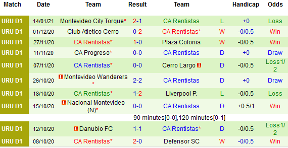 Hơn nữa, điểm tựa dành cho Nacional ở trận đấu này còn là đối thủ của họ… rất yếu với cái tên Rentistas. Kể từ tháng 9 năm ngoái đến nay, đã qua 7 chuyến hành quân xa chỉ chứng kiến Rentistas có duy nhất 1 lần giành chiến thắng.