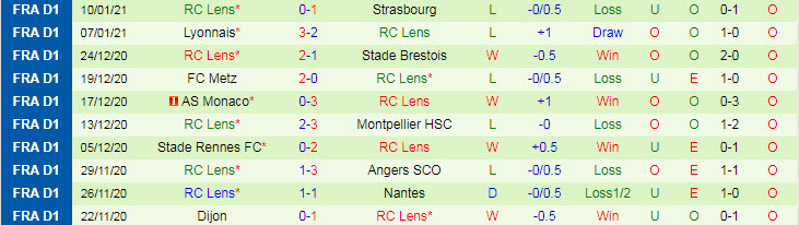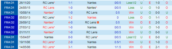 Phong độ và thống kê đối đầu Nantes - Lens gần đây:
