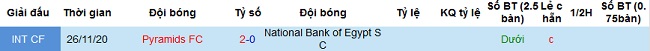 + Soi tỷ lệ kèo tài xỉu: Trong khi đội chủ nhà NBE phải tiếp đón đối thủ mạnh thì ở 4 trận du đấu gần nhất của Pyramids đều có rất ít bàn thắng. Bởi thế có lẽ sẽ khó có nhiều bàn thắng được ghi trong lần đối đầu lần này.