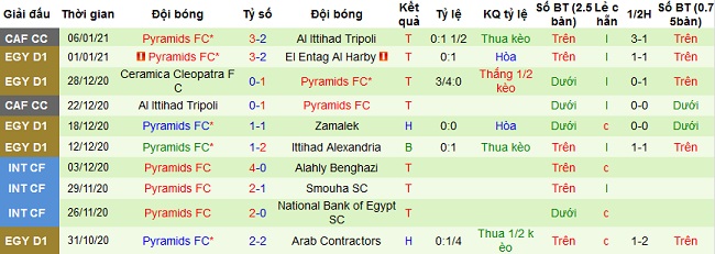 + Thống kê 10 trận gần nhất của Pyramids