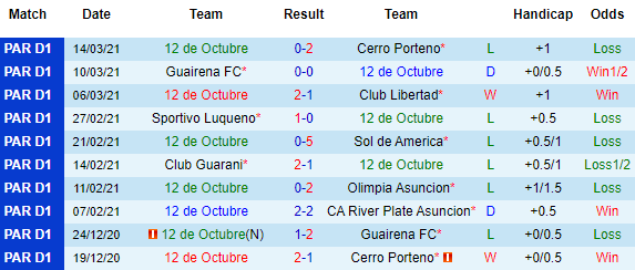 + Lịch sử đối đầu 12 de Octubre vs Nacional Asuncion