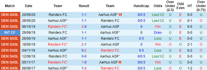 Ngược lại, Randers tạo nên sự tin tưởng vào việc có điểm trong 90 phút tranh tài sắp tới. Randers luôn có được sự tự tin khi đối đầu Aarhus. 14 lần chạm trán Aarhus gần đây tính trên mọi đấu trường, Randers bất bại với 8 thắng, 6 hòa. Aarhus giai đoạn gần đây thi đấu phập phù, 4 trận vừa qua họ để mất điểm 3 lần (thua 2, hòa 1). Trong khi đó Randers bất bại 11 trên 12 trận sân khách trước đó ở mọi giải đấu (thắng 7, hòa 4).