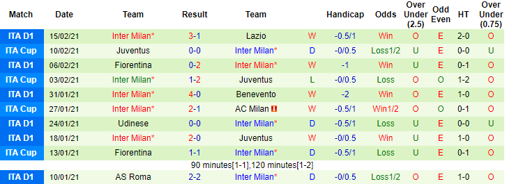 + Thống kê 10 trận gần nhất của Inter