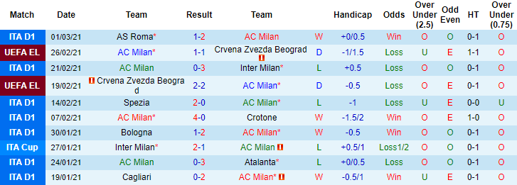 + Thống kê 10 trận gần nhất của AC Milan