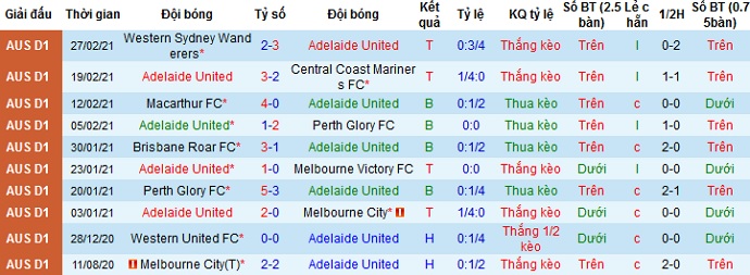 Tuy nhiên ở 5 lần đối đầu gần nhất giữa hai đội Adelaide United vẫn đang có thành tích tốt hơn khi thắng 3, hòa 1 và để thua 1. Không những thế thành tích sân nhà hiện tại của đội bóng là không tồi. Thế nên chọn cửa dưới ở trận đấu này vẫn an toàn và có phần hợp lý.