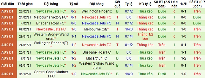 + Thống kê 10 trận gần nhất của Newcastle Jets