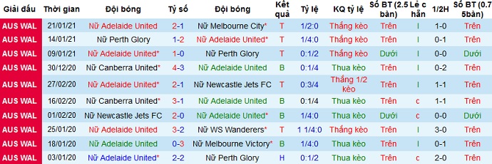 + Soi tỷ lệ kèo châu Á: Mặc dù đang có thành tích tốt và được chơi trên sân nhà nhưng Adelaide United (W) vẫn bị đánh giá là đội cửa dưới với kèo chấp là +0,5. Đó là vì ở mùa giải trước cũng trên sân nhà Adelaide United (W) đã từng để thua trước đối thủ với tỷ số 0-3.