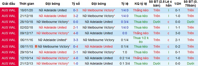 + Lịch sử đối đầu Adelaide United (W) vs Melbourne Victory (W)