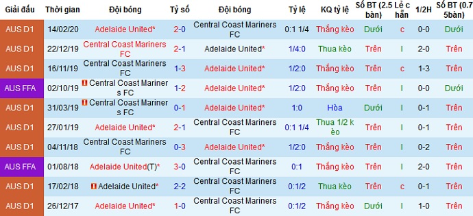 + Lịch sử đối đầu Adelaide vs Central Coast Mariners