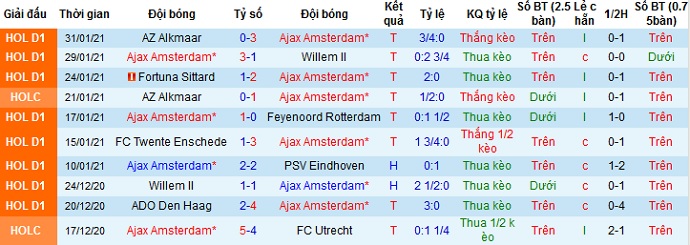 + Thống kê 10 trận gần nhất của Ajax