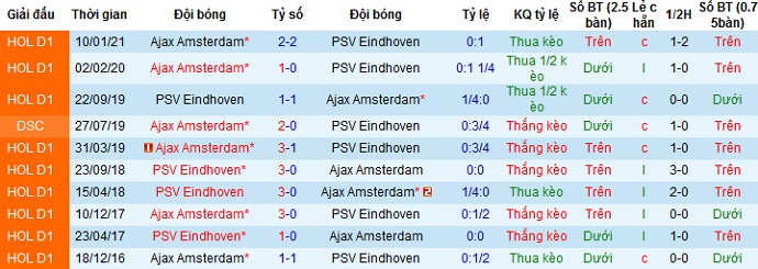 + Lịch sử đối đầu Ajax vs PSV Eindhoven