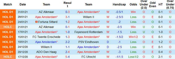 Ajax cho thấy họ không có đối thủ xứng tầm trong cuộc đua vô địch giải VĐQG Hà Lan mùa 2020/21. Các cầu thủ do HLV Erik ten Haag dẫn dắt thu về 50 điểm sau 20 vòng: thắng 16, hòa 2 và thua 2. Khoảng cách giữa Ajax và đội xếp thứ 2 là PSV lên tới 7 điểm trước khi vòng 21 diễn ra.