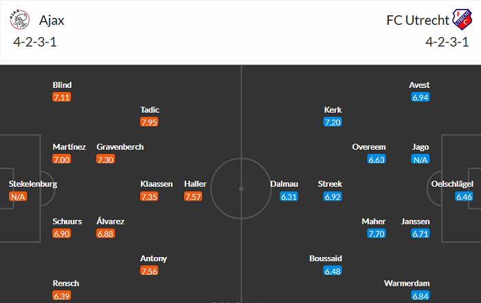 Dự đoán tỷ số Ajax 4-1 Utrecht