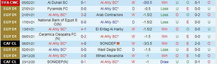 + Thống kê 10 trận gần nhất của Al Ahly
