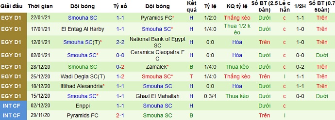 Ở 5 trận gần đây Smouha để thua 1 trận và hòa cả 4 trận liên tiếp gần nhất. Ngay cả trên sân khách thành tích của Smouha cũng không quá tệ với 1 trận thắng, 4 trận hòa và chỉ để thua 1 trận trong 6 lần du đấu gần nhất.
